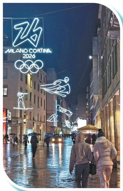 冬奥元素点亮米兰城市街头。 本报记者 巩育华摄